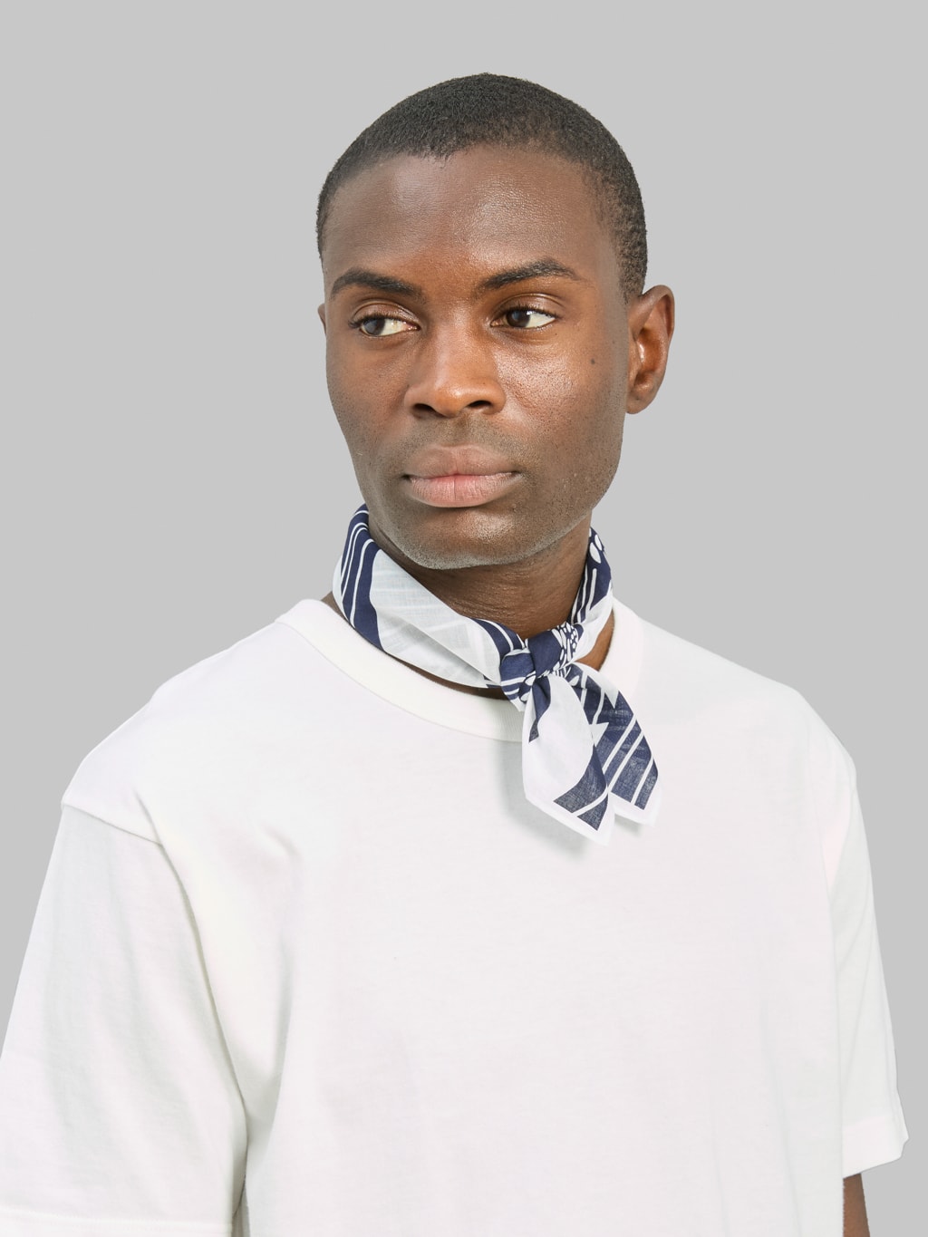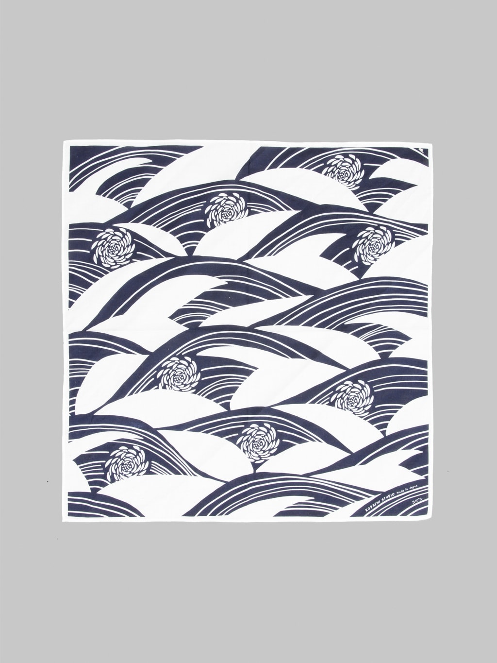 The Kobashi Studio "Kiku-sui" Bandana blends traditional Japanese symbolism with modern design. Featuring chrysanthemum flowers and flowing waves in deep navy on white cotton, it’s hand-printed in Tokyo by artisans. A timeless accessory and piece of wearable art.